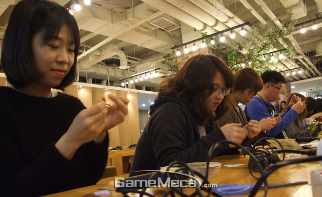 ▲ 아이덴티티게임즈 임직원이 참여한 나눔 리본 만들기 행사 전경(사진제공: 아이덴티티게임즈)