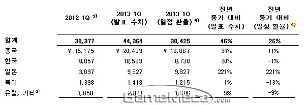 ▲ 2013년 1분기 넥슨 지역별 매출