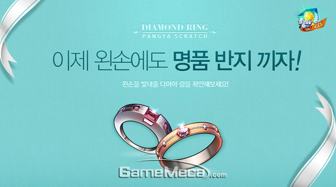 이외에도 '팡야' 는 신규 스크래치 아이템으로 비거리 증가 효과가 발동되는 ‘풀 핑크 다이아 링’과 ‘클리어 다이아 링’ 두 종류를 선보이며, 봉다리 샵을 통해 커브 능력치를 10 향상 시키는 ‘언더 림 안경’ 아이템도 추가한다.