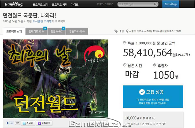 '던전월드' 프로젝트는 한국 TRPG 유저들이 집결하는 온라인 축제의 양상을 띠기도 했다. 목표액 달성 이후에도 꾸준하게 열기를 이어가며 업데이트 38회, 후원자 1,050명, 댓글 666개를 기록했다. 2년간 텀블벅에서 성공한 443개의 프로젝트 중에서 최고 기록이다.