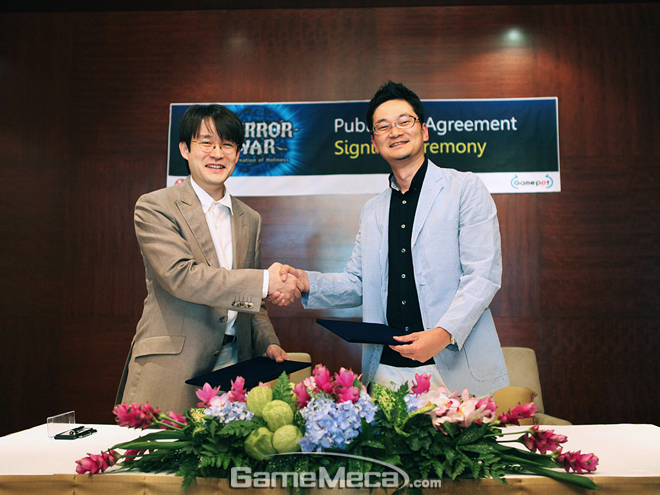 ▲ 엘엔케이로직코리아 남택원 대표(좌)와 게임팟 우에다 슈헤이 대표(우) (사진 제공: 엘엔케이로직코리아)