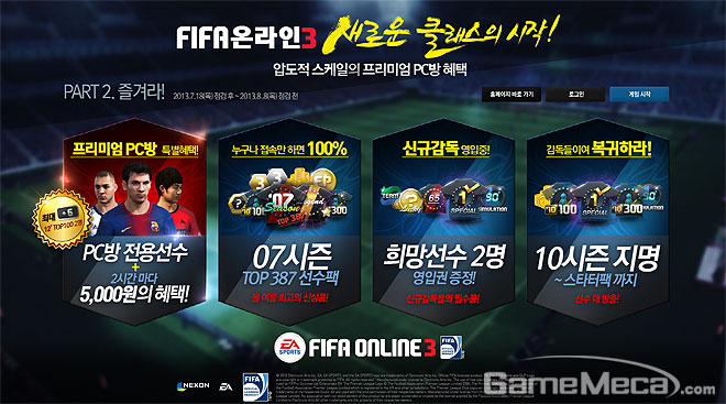 넥슨은 EA 서울 스튜디오가 개발하고 자사가 서비스하는 정통 온라인 축구 게임 ‘피파 온라인 3’에서 프리미엄 PC방 이용자들 대상으로 푸짐한 혜택을 제공하는 이벤트를 7월 18일(목)부터 8월 8일(목)까지 총 3주간 실시한다.