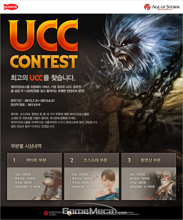 ‘에이지오브스톰’의 UCC 콘테스트에 대한 보다 자세한 사항은 공식 홈페이지(http://aos.pmang.com/)에서 확인할 수 있다.