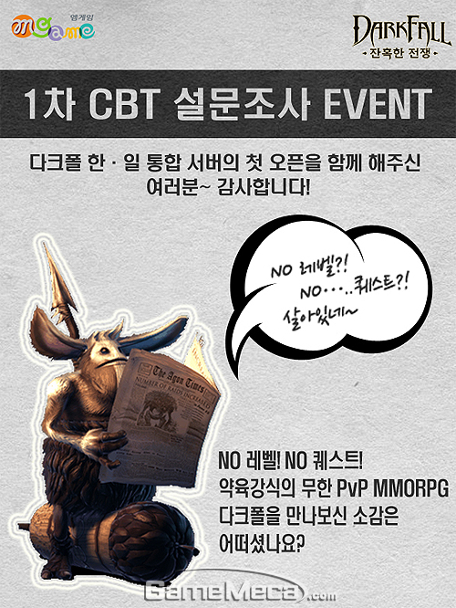 엠게임은 신규MMORPG ‘다크폴: 잔혹한 전쟁’의 1차 비공개 테스트에 참여한 유저들을 대상으로 설문조사를 실시하고 금일 6일 결과를 발표했다.