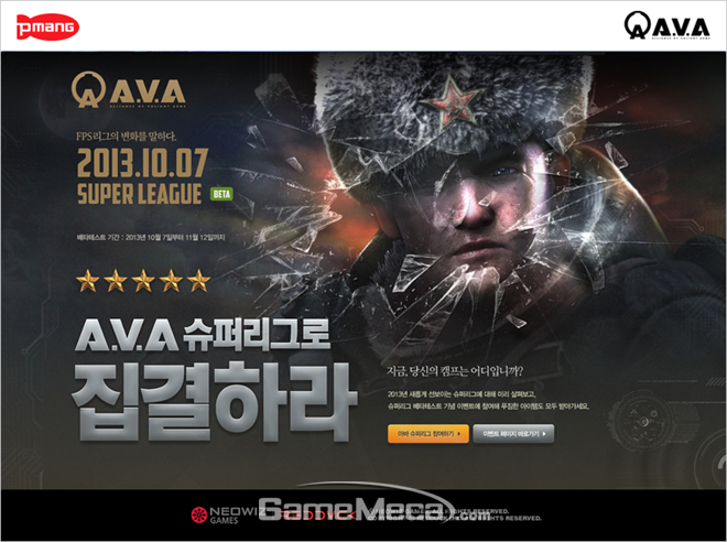 네오위즈게임즈는 게임포털 피망에서 서비스하고 레드덕이 개발한 밀리터리 FPS게임 ‘아바(A.V.A)’에서 새로운 리그 시스템인 ‘슈퍼리그(SUPER LEAGUE)’의 베타테스트를 시작한다고 7일 밝혔다.