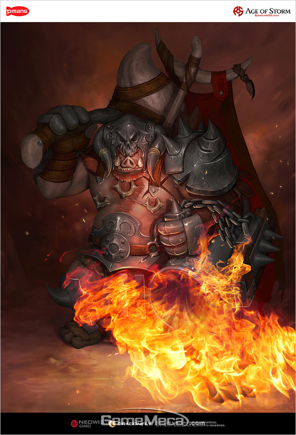 네오위즈게임즈는 드래곤플라이가 개발하고 게임포털 피망이 서비스하는 AOS게임 ‘킹덤언더파이어 온라인: 에이지오브스톰' 의 신규 캐릭터 ‘오르쿠스’의 일러스트를 공개했다. ‘오르쿠스’는 탐욕스러운 불꽃으로 자신을 가로막는 훼방꾼을 모조리 불태우는 오크 포병대장이다
