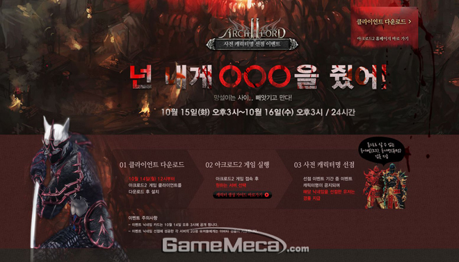 ▲ 클라이언트 배포 및 캐릭텀여 선점 이벤트도 진행하는 '아크로드 2' (사진 제공: 웹젠)