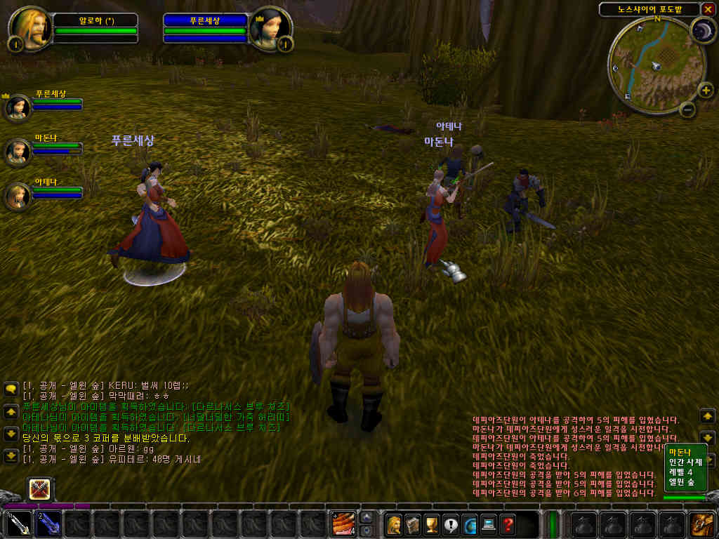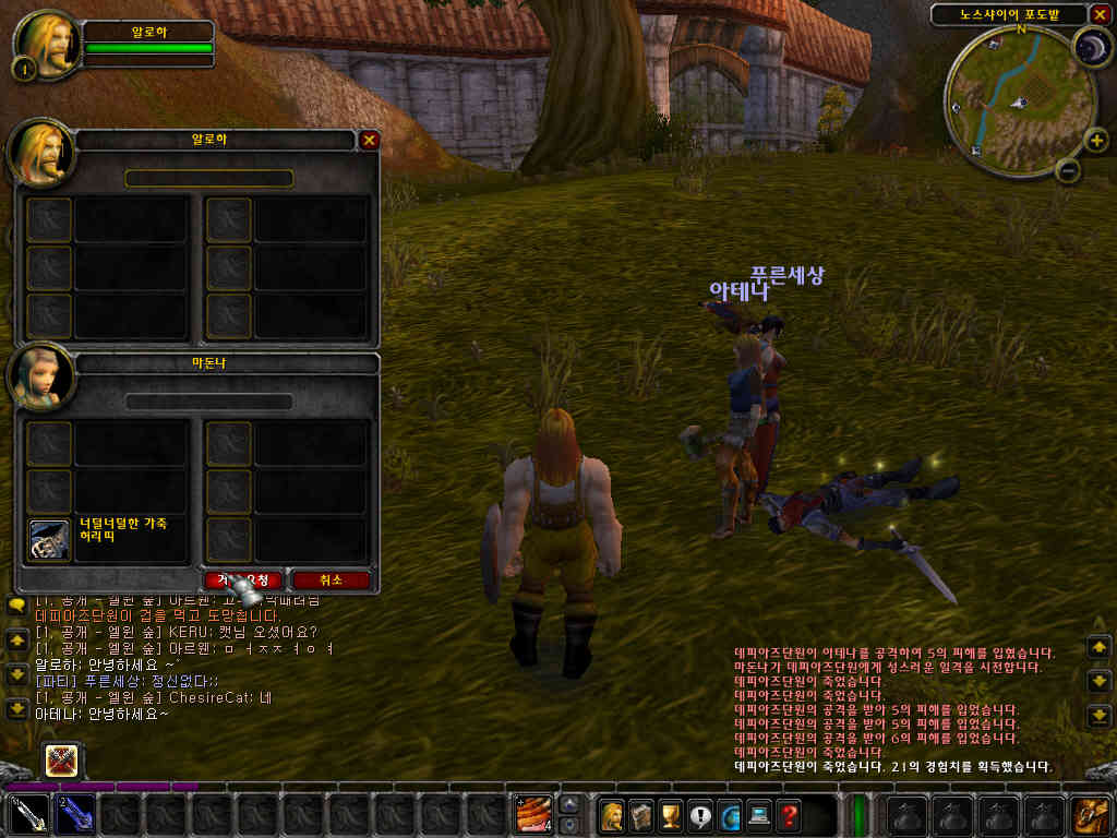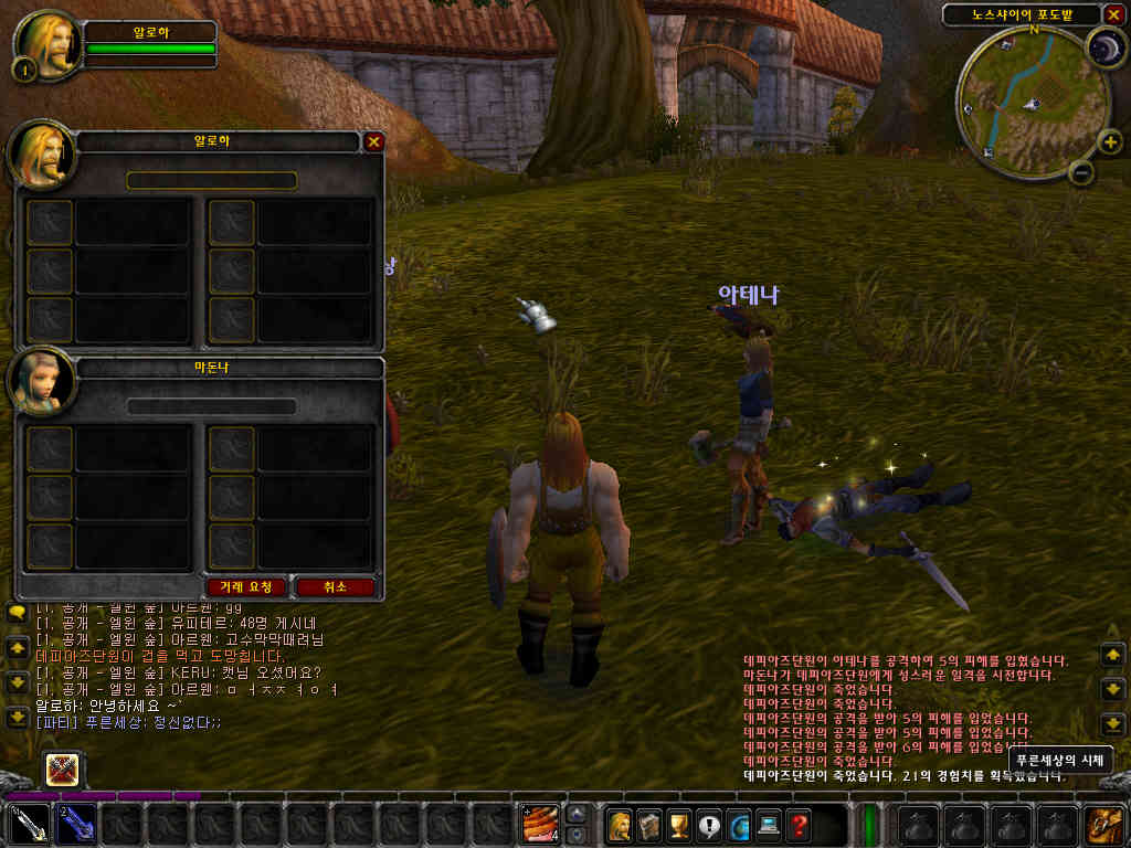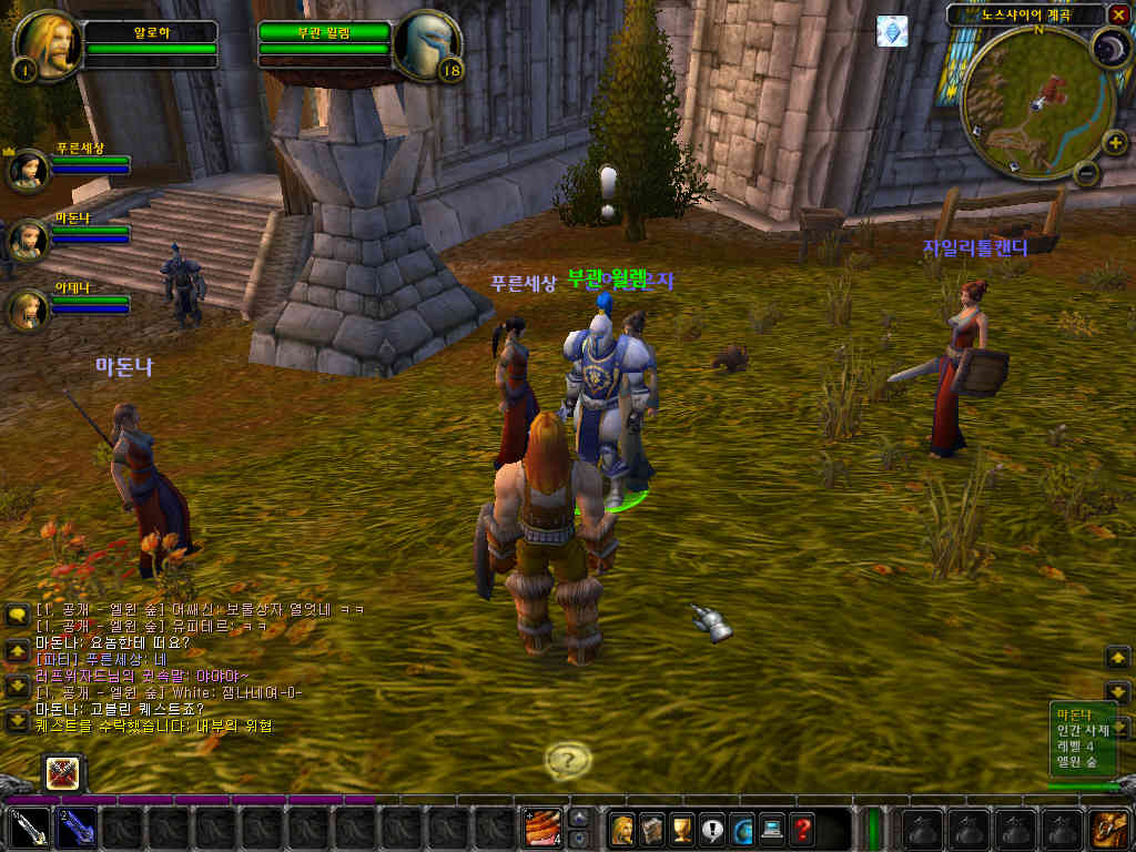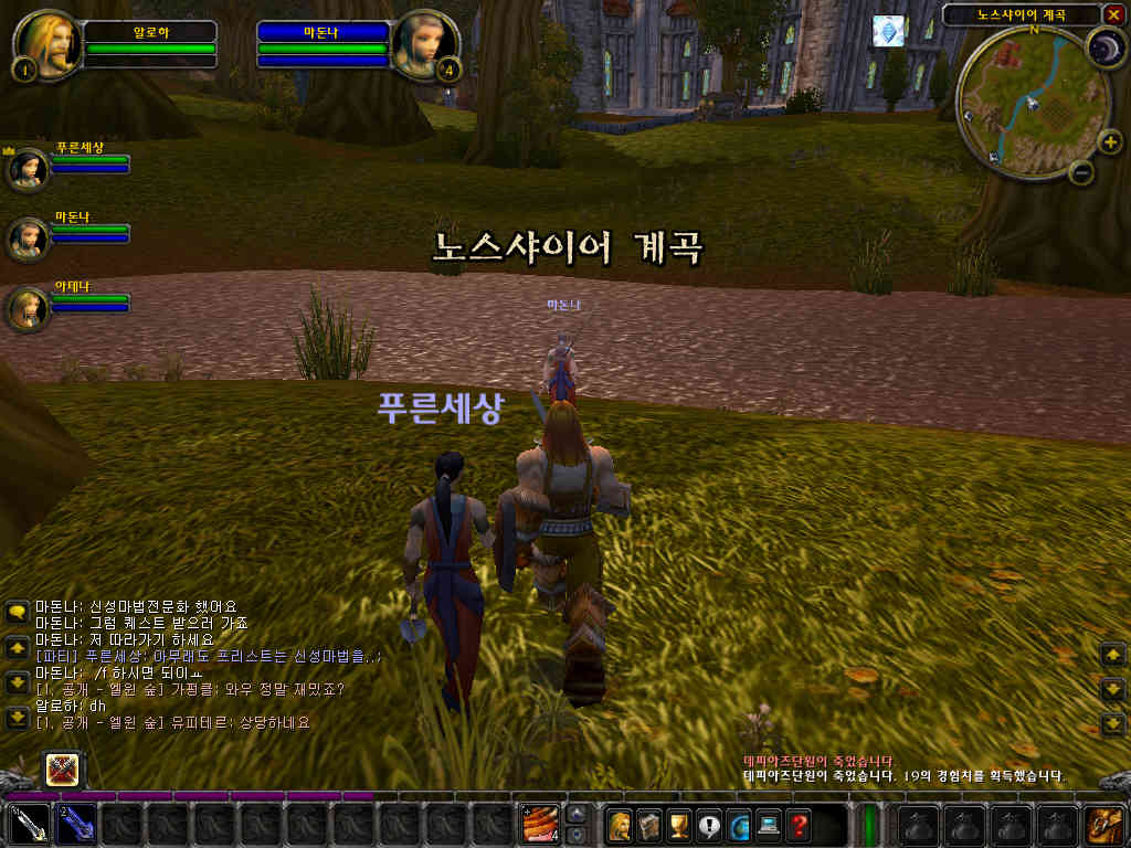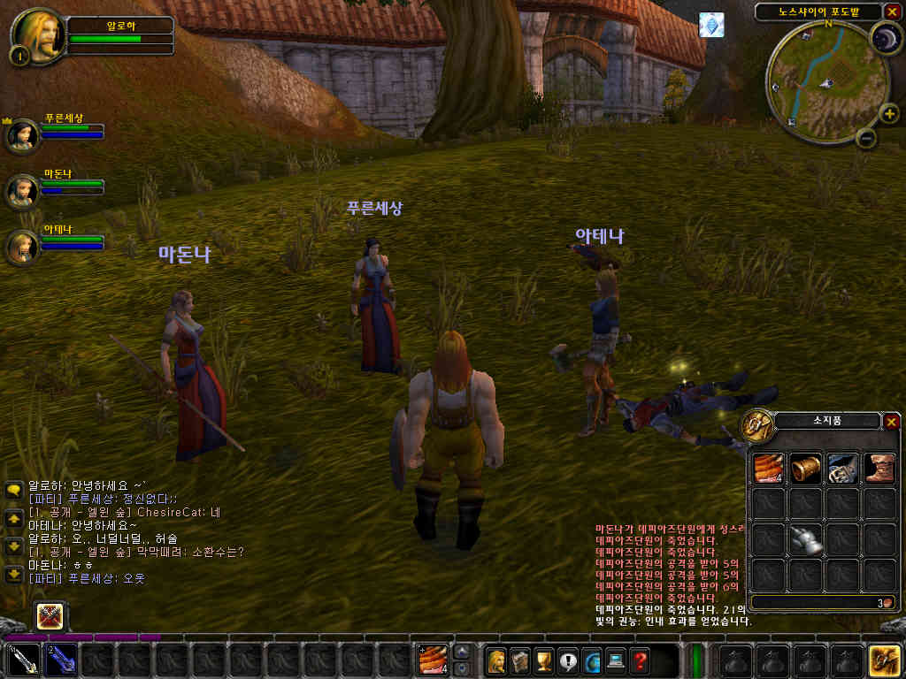 월드 오브 워크래프트의 초반 진행 스크린샷입니다. 와우메카 기자단 분들과 파티를 맺어 게임을 진행하는 모습입니다(그림을 클릭하면 큰 화면이 나옵니다).