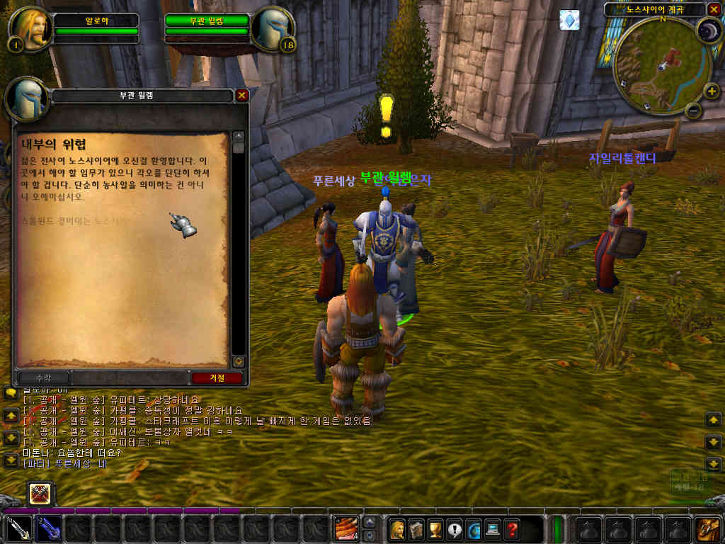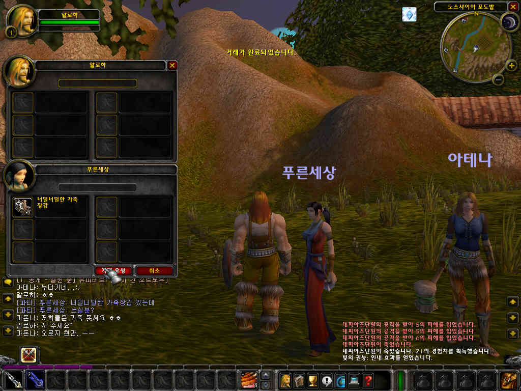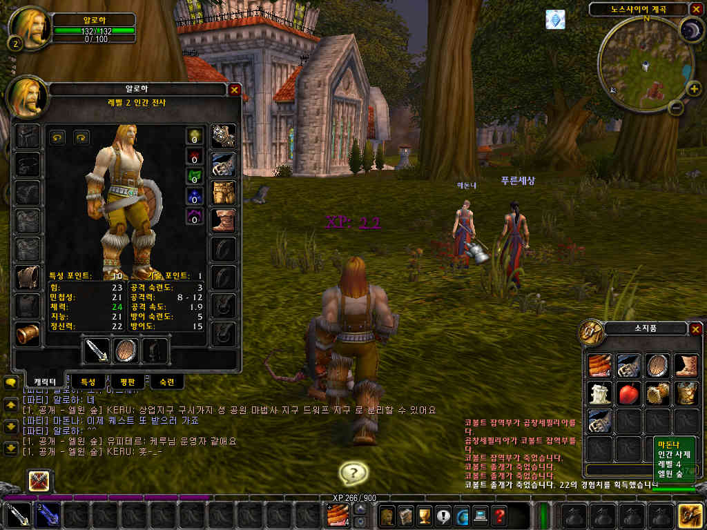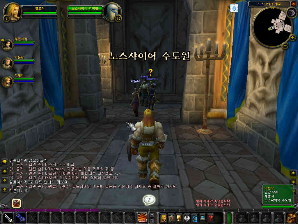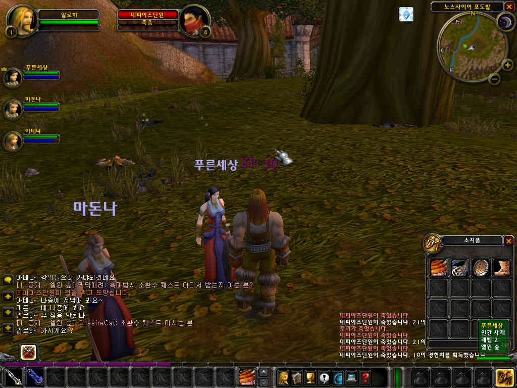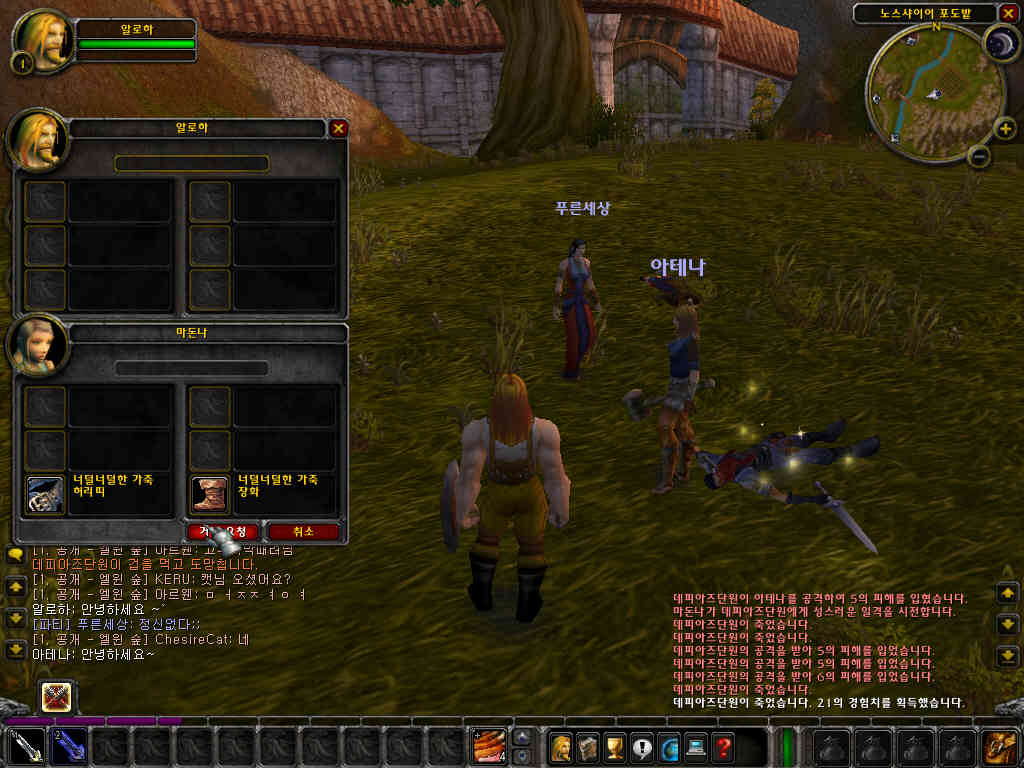 월드 오브 워크래프트의 초반 진행 스크린샷입니다. 와우메카 기자단 분들과 파티를 맺어 게임을 진행하는 모습입니다(그림을 클릭하면 큰 화면이 나옵니다).