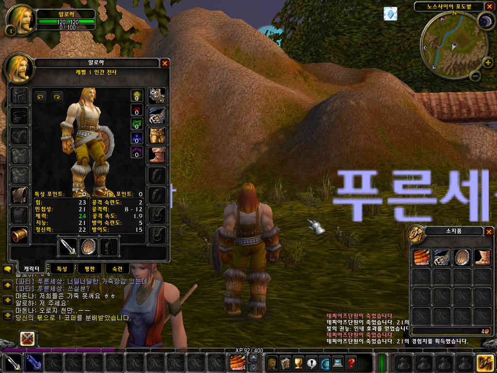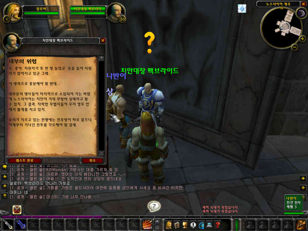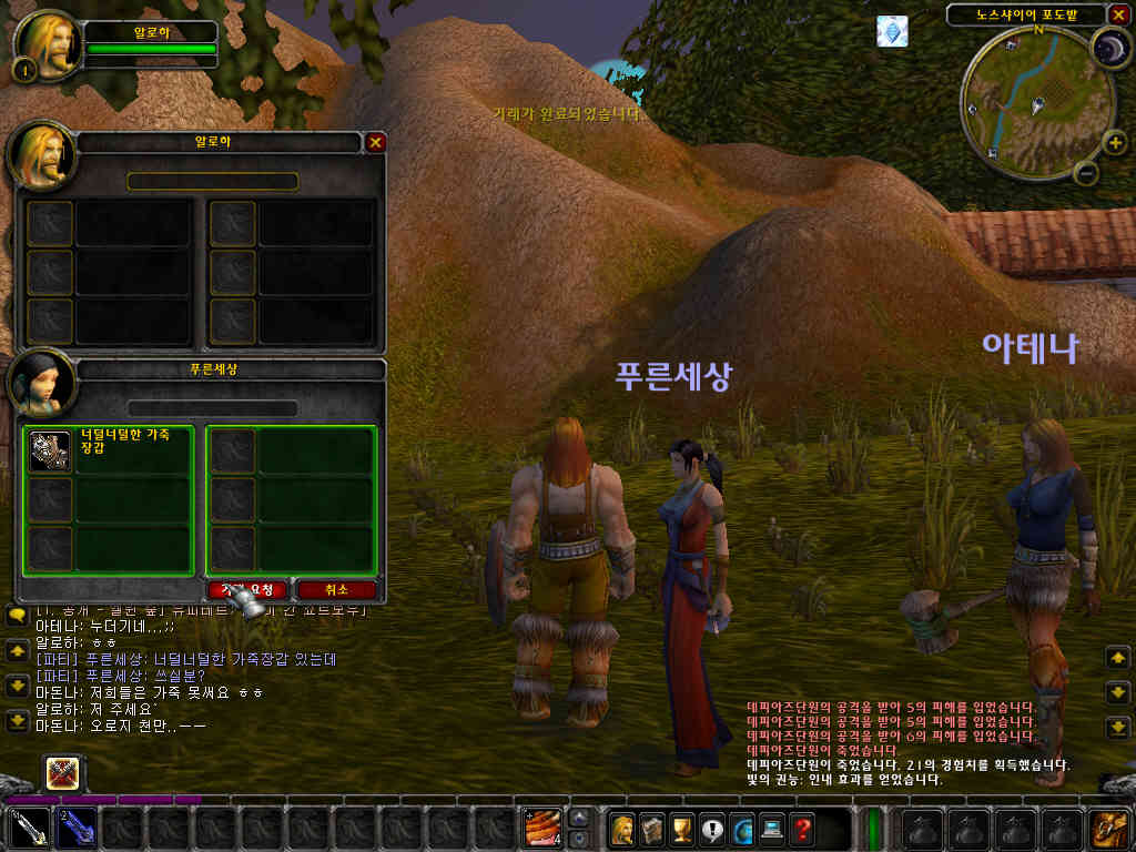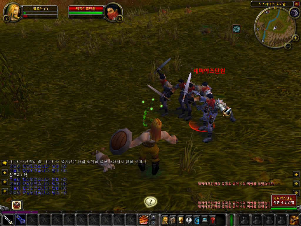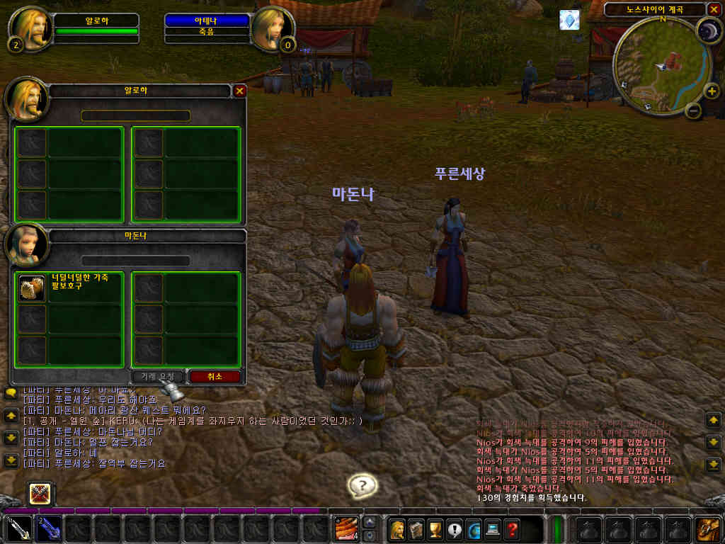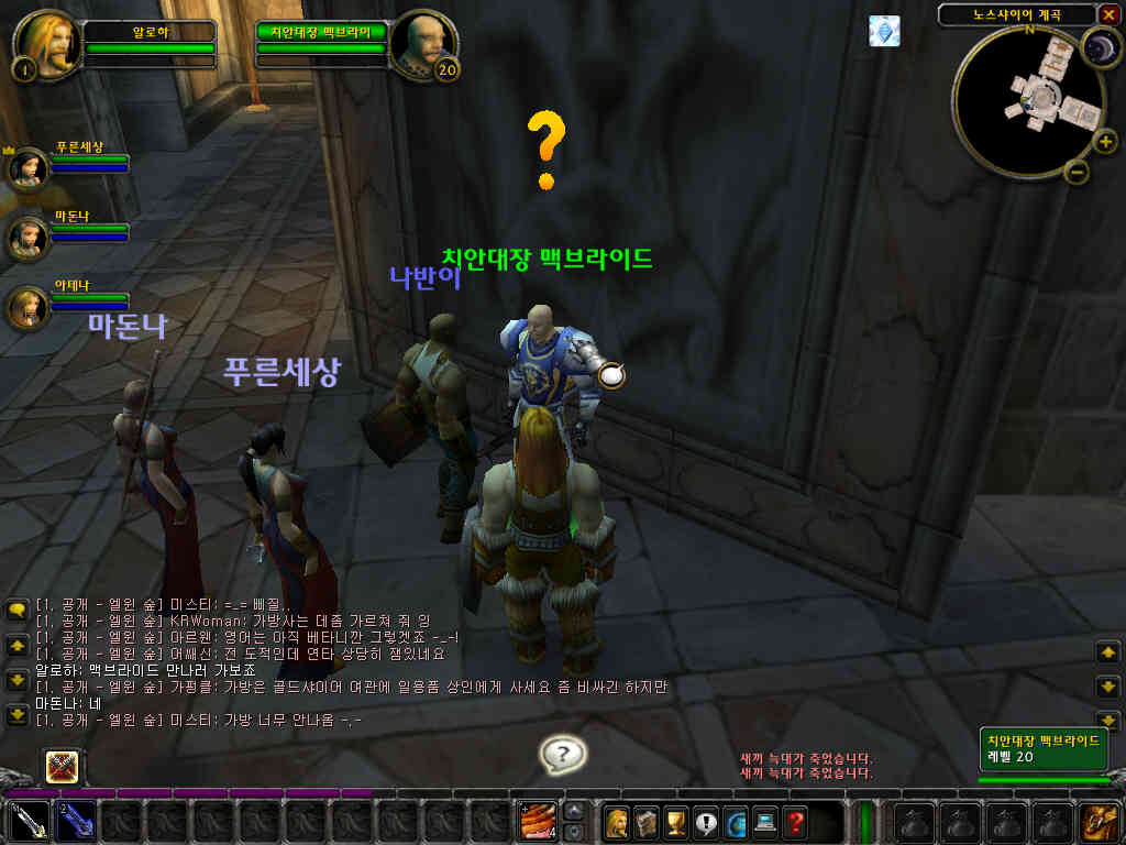 월드 오브 워크래프트의 초반 진행 스크린샷입니다. 와우메카 기자단 분들과 파티를 맺어 게임을 진행하는 모습입니다(그림을 클릭하면 큰 화면이 나옵니다).