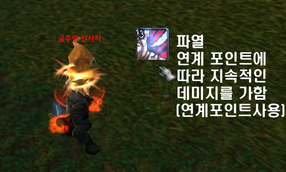 자.. 몹이 기절중일 때에 파열이란 스킬을 써봅시다.. 그러면 적은 지속적인 데미지를