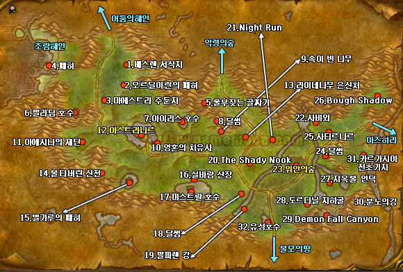 5. 브린은 이제 여러분에게 나이트엘프의 지역인 잿빛 골짜기로 가서 물을 담아오라고 시킨다. 잿빛 골짜기는 불모의 땅 바로 북쪽 지역이다.