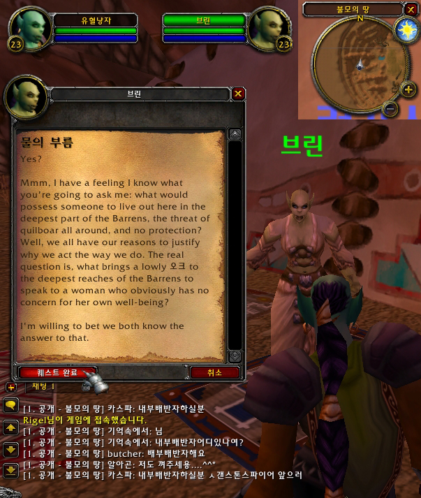 내용인즉슨, 자기는 내가 올 줄 미리 알고 있었으며 왜 이런 이상한데서 사냐고 묻겠지만(브린은 점장이인가보다 >.<) 다들 나름대로 행동하는 이유가 있는 법이고 진짜 중요한건 너같은 오크가 왜 나처럼 보잘것 없는 존재를 찾아 왔겠느냐는 것이다.