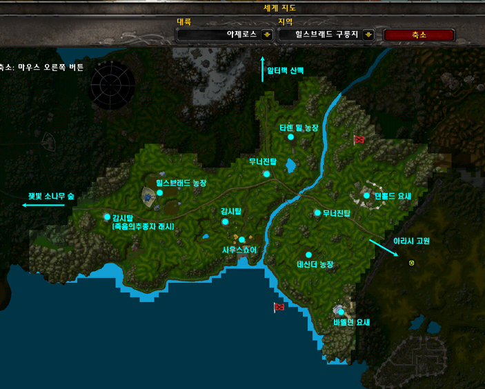 힐스브래드 구릉지라니, 이게 대체 어디있는 동네일까. 간단히 설명하면 언데드들이 wow의 세계에 첫 발을 들여 놓는 언더시티가 있는 존이 티리스팔 숲이고, 거기서 남으로 내려가면 잿빛 소나무숲, 잿빛 소나무숲에서 남동쪽으로 넘어가면 힐스브래드 구릉지가 된다.