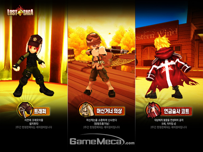 조이맥스의 자회사 아이오엔터테인먼트가 개발하고 위메이드 엔터테인먼트에서 서비스하는 인기 대전 액션 온라인 게임 '로스트사가'가 6일(수) 신규 레어 장비 3종을 공개했다. 2주간 한정적으로 선보이는 신규 레어 장비는 지면에 크레모어를 설치하는 '트래퍼', 머신 캐논을 소환하여 난사하는 '머신거너 의상', 대상에서 불꽃 공격을 하는 '연금술사 코트'이다