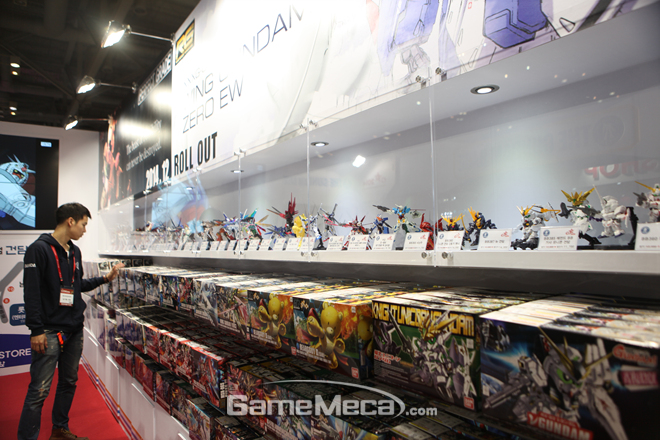 11월 20일, 국제게임쇼 지스타 2014의 막이 올랐다. 이번 지스타 2014 B2C관에는 마니아들을 위한 건담 전문 판매점 건담베이스 부스가 마련됐다. 건담베이스 부스 벽면에는 다양한 건담 프라모델이 전시되 관람객들의 눈길을 사로잡았다. 또 매장 내에서는 SD부터 MG까지 다양한 크기의 건담 프라모델을 할인된 가격으로 구매할 수 있다. 게임메카는 마니아들을 위해 지스타 2014에 마련된 건담베이스의 풍경을 카메라에 담았다.