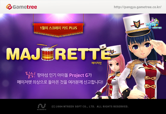 이외에도 `팡야` 는 1월 신규 스크래치 아이템으로 쿠, 루시아, 하나, 아린, 세실리아, 넬이 착용할 수 있는 군악대 컨셉의 신규 의상 ‘메이저렛’ 을 업데이트한다.