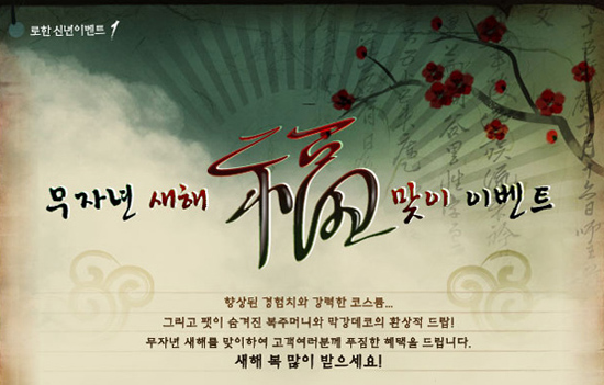 YNK코리아는 ‘로한(www.rohan.co.kr)’에서 2008년 무자년 새해를 맞아 추가 경험치 제공과 다양한 희귀 아이템을 증정하는 이벤트를 오는 2월 12일까지 실시한다고 밝혔다.