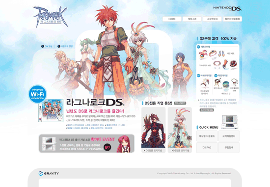 정대식 전략IP사업팀장은 “공식 홈페이지에는 무엇보다 유저들이 궁금해하는 게임 정보와 특징을 상세히 소개하는데 주력했다”며, “국내 온라인게임 최초의 닌텐도 DS 전용 게임 ‘라그나로크 DS’를 미리 만날 수 있는 기회이니 많은 관심 바란다”고 말했다.