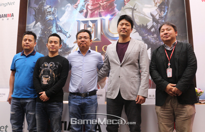 웹젠은 7일, 자사의 판교 사옥에서 '뮤 오리진' 개발사 킹넷 왕위예 대표와 천마시공 리우후이청, 치우텅시 공동대표를 초대해 게임에 대한 보다 자세한 이야기를 들어보는 간담회를 가졌다.