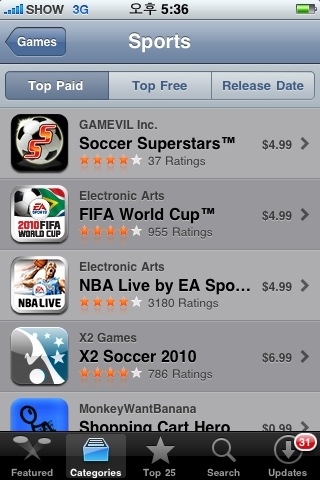 ‘2010 남아공 월드컵’으로 달아오르고 있는 세계 축구 열풍에 맞춰 게임빌이 최근 애플의 앱스토어에 선보인 모바일 축구 게임이 큰 관심을 모으고 있다.