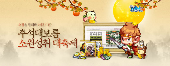 영물 업데이트와 함께 추석 이벤트인 ‘추석 대보름 축제’도 16일부터 펼쳐진다. 이 중 10월 6일까지 진행하는 ‘추석 세배돈 이벤트’는 문화상품권, 넷마블 캐쉬 등 총 상금 5000만원 규모의 대박 이벤트다.