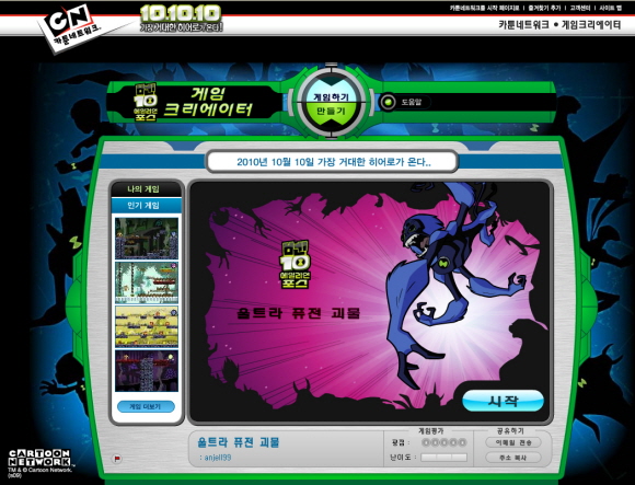 `벤10 게임 크리에이터` 가 런칭 한달만에 카툰네트워크의 최고 인기 게임 콘텐츠로 등극하고 9월 15일부터 쥬니어네이버에서도 서비스를 오픈해 또 한번의 급격한 성장을 예고하고 있다.
