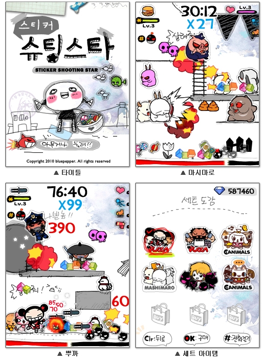 ‘스티커슈팅스타’는 스티커를 소재로 한 독특한 컨셉의 캐주얼 슈팅 액션 게임으로, 블루페퍼㈜가 개발하고 ㈜모비클(대표 정희철)이 퍼블리싱을 담당한다.