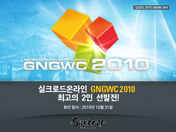 <실크로드 온라인>의 한국지역 본선은 10월 31일 오전 10시부터 수원시 실내체육관에서 열린다. 예선을 통해 선발된 16인이 경기를 진행하며 최종 2인은 오는 11월 부산에서 열리는 ‘GNGWC 2010’ 세계대회 결선에 한국 대표로 참가하게 된다.