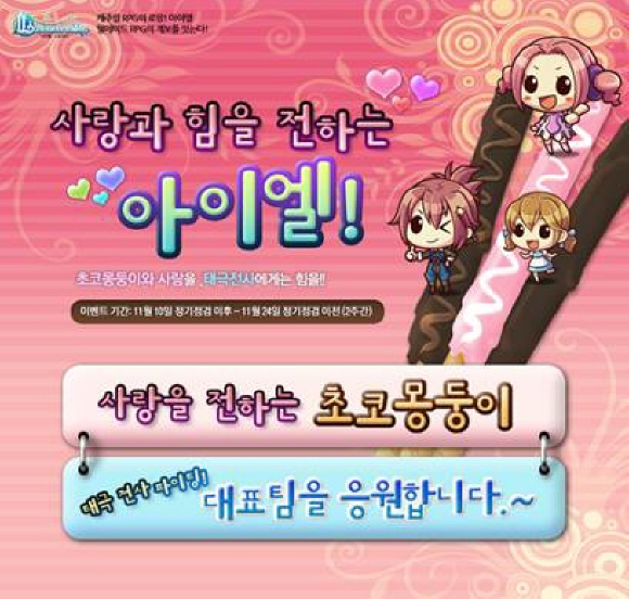 더불어 `아이엘`에서는 아시안게임을 기념해 이달 24일(수)까지 `태극전사 파이팅! 대표팀을 응원합니다~` 이벤트를 실시하며, `아이엘`에 접속만 해도 모든 게이머들에게 `태극전사 응원복Ⅱ 패키지`를 지급해 큰 호응을 얻고 있다.