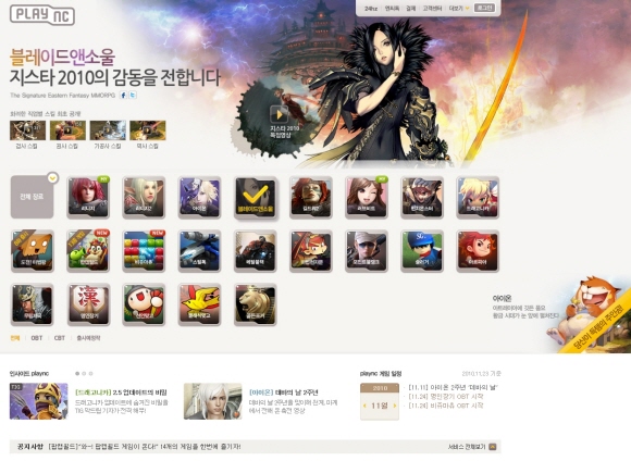 개편된 플레이엔씨 메인 페이지는 ‘웹라이트 게임포털’을 표방하며 고객이 원하는 게임을 ‘쉽고 재미있게’ 즐기고, ‘편리하게’ 찾을 수 있도록 한다는 취지에서 게임 아이콘 중심의 UI로 구성되었다. 새로 개편된 플레이엔씨 메인 페이지에서는 각 게임별 아이콘을 통해 서비스되는 전체 게임들을 한 눈에 살펴 볼 수 있고, 게임 일정표를 통해 주요 콘텐츠 업데이트 일정과 CBT, OBT 등 게임에 대한 최신 소식을 빠르게 얻을 수 있다.
