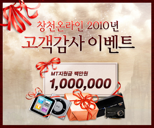 이와 함께, 서버 통합 기념 및 올 한해 `창천 온라인`을 아껴준 이용자들에게 보답하고자, ‘2010년 고객감사 이벤트’를 12월 8일부터 1월 5일까지 진행한다.