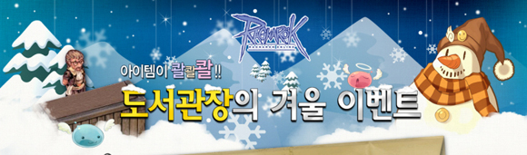 먼저, ‘라그나로크 온라인’은 ‘도서관장의 겨울 이벤트’라는 주제로 오늘부터 22일까지 운영자가 나눠주는 ‘핸드메이드 초콜릿’과 ‘초콜릿 드링크’를 받을 수 있는 ‘2010 화이트 크리스마스 초콜렛 이벤트’와 운영자가 소환한 포링을 찾아오는 ‘포링단을 찾아라 이벤트’를 통해 ‘낡은 카드첩’, ‘선물상자’ 등 아이템을 지급한다. 또한 홈페이지를 통한 유저들의 기발한 아이디어를 모집하는 ‘아이디어 캠페인 이벤트’를 29일까지 진행해 ‘운영팀 모자’와 ‘로리루리 펫’, ‘악세서리 상자’ 등 아이템을 지급한다.