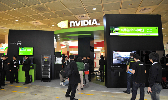 코엑스 3층 C홀 #C15 엔비디아 부스에서는 8개의 화면에 걸쳐 초고화질 첨단 입체 3D 환경을 제공하는 ‘엔비디아 쿼드로 3D 디지털 씨어터(NVIDIA Quadro 3D Digital Theater)’가 펼쳐지며, 16일 하루 컨퍼런스홀 317B/C 에서 진행되는 “엔비디아 쿠다(CUDA) 워크숍”에서는 워크숍은 GPU 컴퓨팅, 쿠다 C(CUDA C) 프로그래밍, 3D 스테레오스코픽 솔루션, 다이렉트X11 테셀레이션(DirectX11 Tessellation) 등 다양한 주제로 개발자들을 대상으로 프레젠테이션이 이뤄질 예정이다. 또한, 17일과 18일에 개최되는 테크 톡(Tech Talk) 세션에서는 엔비디아 전문가용 솔루션 그룹의 소프트웨어관리 담당 필립 밀러(Phillip Miller) 디렉터의 발표로 GPU 레이 트레이싱(Ray tracing)과 GPU를 사용한 어플리케이션 개발 등에 대한 내용이 진행된다.