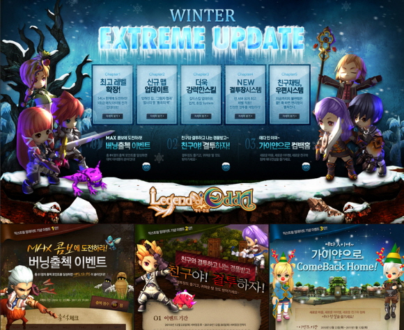 우선 `윈터 익스트림` 업데이트 기념 이벤트 1탄으로 `MAX 콤보에 도전하라!! 버닝 출첵` 이벤트를 실시한다. 출석 체크 포인트를 달성하면 누적해서 더 많은 아이템이 쏟아지는 이 이벤트는 내년 1월 19일까지 진행된다.