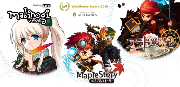 넥슨의 대표 게임들이 일본에서 최고 인기 게임으로 선정됐다. 넥슨은 자사의 일본법인이 일본에서 서비스하는 ‘메이플스토리’, ‘던전앤파이터(일본명 아라드전기)’, ‘마비노기’가 ‘웹머니 어워드 2010(Web Money Award 2010)’의 베스트 게임에 선정됐다고 밝혔다.