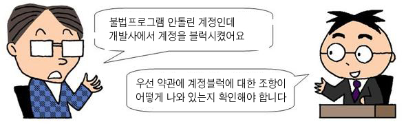 별다른 인식없이 아이템 현금거래를 하거나, 자동사냥프로그램 등을 사용하다가 게임회사로부터 제재조치를 당하면 이용자는 당황하기 쉽습니다. 이런 경우, 우선 약관 내용을 꼼꼼히 확인하면서 게임회사가 이용약관에 맞게 제재조치를 취한 것인지 확인해보시고, 설사 이용약관에 따라 제재조치가 취해졌다고 할지라도 약관조항이 이용자에게 부당하게 불리하다고 판단되는 경우에는 약관조항의 무효를 다투어볼 수 없을지 한번쯤 생각해 보시기 바랍니다.
