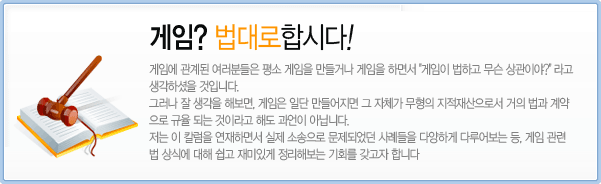 온라인 게임 서비스를 이용하기 위해 이용자들은 가입절차를 거치게 되는데, 이러한 가입절차에는 반드시 약관에 대한 동의절차가 포함되어 있습니다. 이번 칼럼에서는 게임이용을 위해 반드시 동의해야 하는 게임회사의 이용약관과 관련된 쟁점들을 한 번 살펴보도록 하겠습니다.