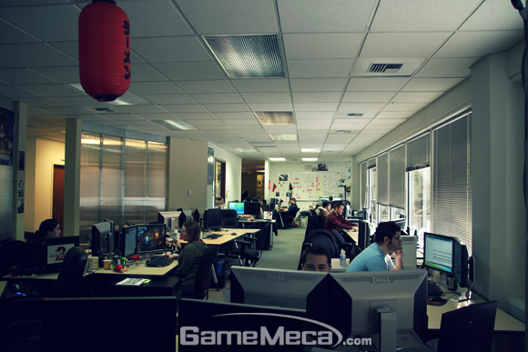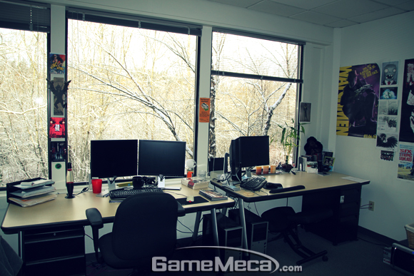 아레나넷의 첫 느낌은 마치 대학교 동호회 같다고나 할까요? 부서마다 파티션이 나눠져있고 임원별로 별도의 방이 따로 있는 국내 개발사와 달리 아레나넷은 하나의 건물 오픈된 공간안에서(문도 없더군요) 매우 자유스럽게 업무를 진행하고 있었습니다. 심지어 아레나넷 대표이사의 책상이 복도에 나와 있을 정도니까요.