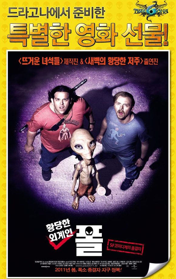 ‘황당한 외계인: 폴’은 오는 4월 7일 개봉하는 SF 코미디 영화로 외계인 성지순례에 나선 두 명의 SF괴짜 지구 남자들이 지구생활 60년째인 진짜 외계인 폴을 만나 악당에게 쫓기게 되는 헤프닝을 담고 있다.