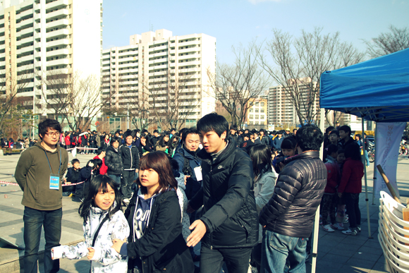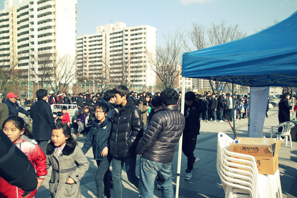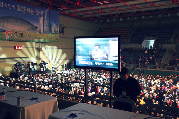 국민게임의 증명일까? 넥슨 스태프의 손이 갑자기 바빠졌다. 26일 토요일 광명실내체육관은 서든어택과 던전앤파이터 최고수들이 펼치는 빅매치 경기 ‘티브로드 e스포츠 페스티벌’을 보러 온 관람객들로 오랜만에 대성황을 이뤘다. 행사전 초대권을 미리 뿌려 홍보를 하긴 했지만 수도권 지역이 아닌 곳이라 과연 얼마나 참여할까 걱정이 앞섰던 행사였다. 하지만 당초 예상보다 훨씬 많은 인원이 몰리며 넥슨 관계자를 함박 웃음짓게 만들었다. 선착순 1,000명에게 게임머니 쿠폰을 지급해 넥슨 게임 유저를 모은 것도 유효했지만 행사 중간 유명 뮤지컬 ‘난타’ 공연진과 아이돌 그룹 ‘엠블랙(MBLAQ)을 초대해 가족단위 관람객의 참여를 유도한 것도 좋은 성과였다. 실제로 경기장에는 유모차나 어린아이를 껴 앉고 경기를 관람하는 관객들이 눈에 띄게 많았다.