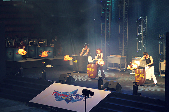 시작전 `난타` 공연팀의 연기로 관람객을 열광시켰다