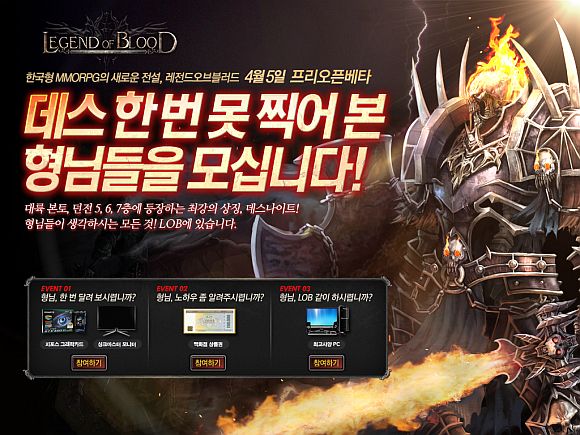 ‘한국형 MMORPG의 새로운 전설’이라는 슬로건을 목표로 정식 서비스를 준비 중인 레전드오브블러드는 ‘핵&슬래시’ 전투 타입과 길드 커뮤니케이션 중심의 게임성으로 정통 MMORPG 특유의 재미를 전한다는 평가를 받고 있다.