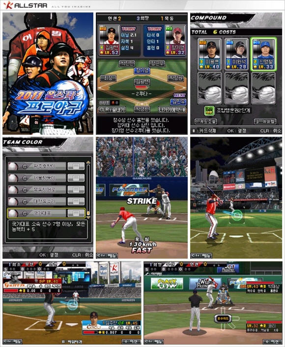 특히 `2011 올스타프로야구` 는 2011 프로야구 시즌을 겨냥한 ‘시즌 모드’과 함께 역대 우승팀과의 대결인 ‘레전드 모드’, 미국, 일본, 대만 등 8개국과의 ‘컵 모드’ 등 다양한 게임 모드를 지원하며, 경기마다 랜덤으로 생성되는 미션을 통해 예측 불가능한 색다른 재미를 선사할 것으로 기대된다.