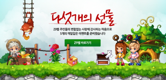 NHN 게임포털 한게임의 캐주얼 게임 `내맘대로 Z9별(이하 지구별)` 은 5월을 맞아 `지구별` 과 함께하는 이용자들에게 다양한 선물을 증정하는 ‘5월 5개 선물’ 이벤트를 5월 31일까지 진행한다고 밝혔다.