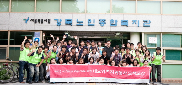 네오위즈 직원들은 9일, 실버케어 전문기업 그린케어와 함께 서울시립 강북 노인종합복지관을 방문해 사랑의 꾸러미를 전달했다.