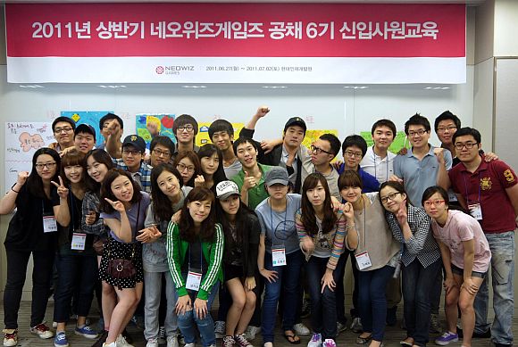 네오위즈게임즈(대표 윤상규)의 ‘새내기’들이 6월 27일부터 5박 6일에 걸친 공채6기 신입사원 교육을 마쳤다. 2011년 상반기 공개채용에서 약 80대 1의 경쟁률을 뚫고 최종 선발된 이들은, 경기도 용인에 위치한 한 연수원에 모여 교육 프로그램을 수행하며 회사의 일원으로 거듭나는 시간을 가졌다.