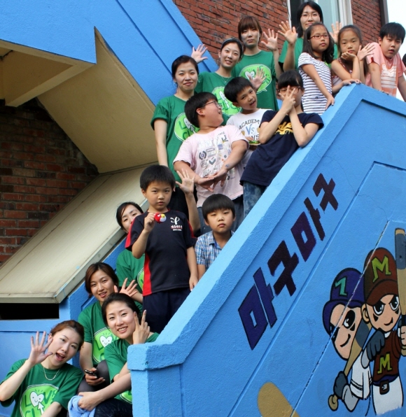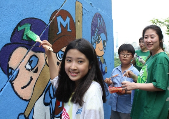 이날 벽화그리기 활동은 소외된 이웃의 아이들이 좀 더 다양한 문화체험을 통해 세상과 소통하고, 낙후된 시설을 개선하기 위한 나눔 경영의 일환으로 진행됐다.
