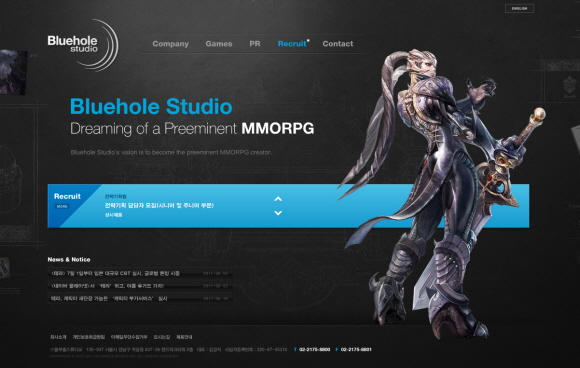 한편, 블루홀스튜디오는 트위터, 페이스북 등 소셜 네트워크 서비스(SNS)를 적극 활용한 기업 홍보 활동에도 조만간 나설 방침이라고 덧붙였다. 새로 단장한 블루홀스튜디오의 공식 홈페이지의 모습은 (www.bluehole.net)에서 확인 가능하다.