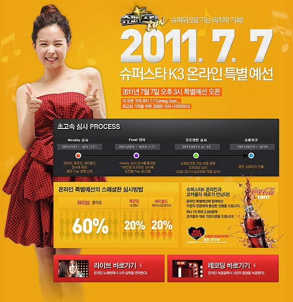 이번 슈스케 온라인 특별예선은 누구나 참여가 가능한 것은 물론, 이미 오프라인 본선, 예선 탈락자도 재도전할 수 있는 슈퍼스타K 패자부활전 역할도 겸하고 있다.